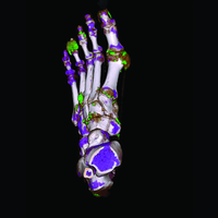 • In patients with a confirmed diagnosis of gout, DECT technology can be used to qualify the amount of urate crystal deposition. DECT's ability to measure overall or focused tophus burden with high accuracy makes it an ideal tool to document response to therapy in daily practive or in clinical trials.
